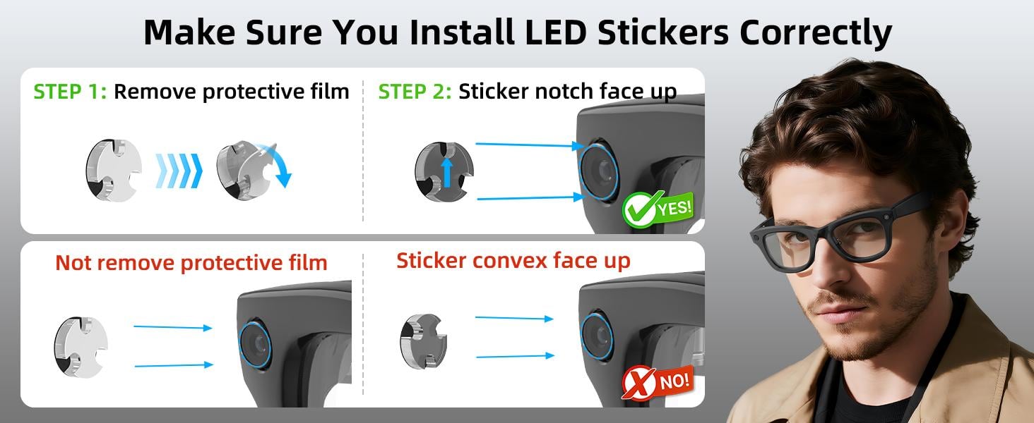 Fits most popular smart glasses, including similar frame designs and LED placements.